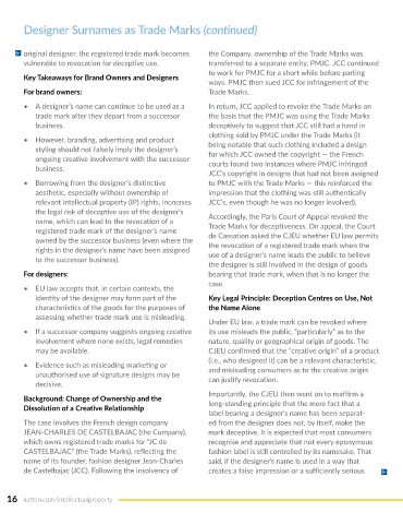 • A designer’s name can continue to be used as a In return, JCC applied to revoke the Trade Marks on