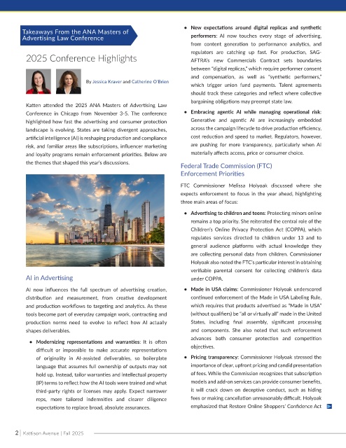 AI now influences the full spectrum of advertising creation, • Made in USA claims: Commissioner Holyoak underscored