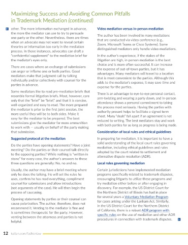 in Trademark Mediation (continued)