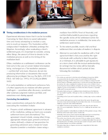 Timing considerations in the mediation process mediator from INTA’s Panel of Neutrals), and
