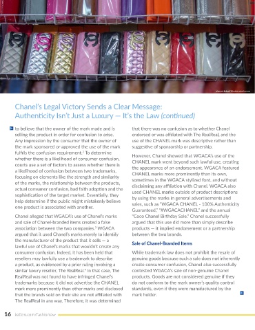 similar luxury reseller, The RealReal. In that case, The contested WGACA’s sale of non-genuine Chanel