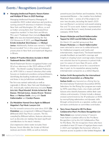•  Managing Intellectual Property Honors Katten             powerhouses Live Nation and Insomniac. He has